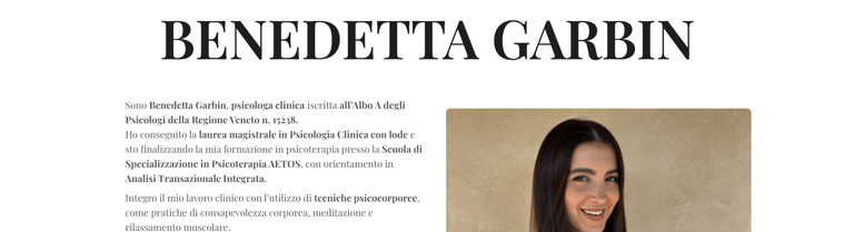 BENEDETTA GARBIN: collaborazione con professionista in ambito psicologico, PER UNa VERa PROFESSIONISTA (BUSINESS PACK)